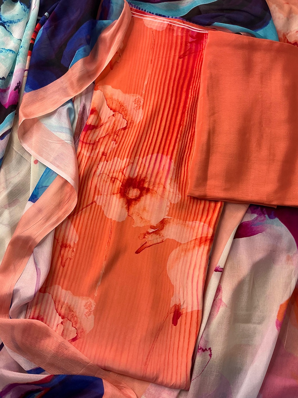 Crepe suit and Chinon Dupatta with Crepe Bottom