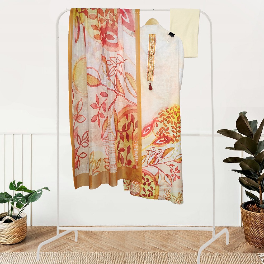 Linen suit & Dupatta with cotton bottom