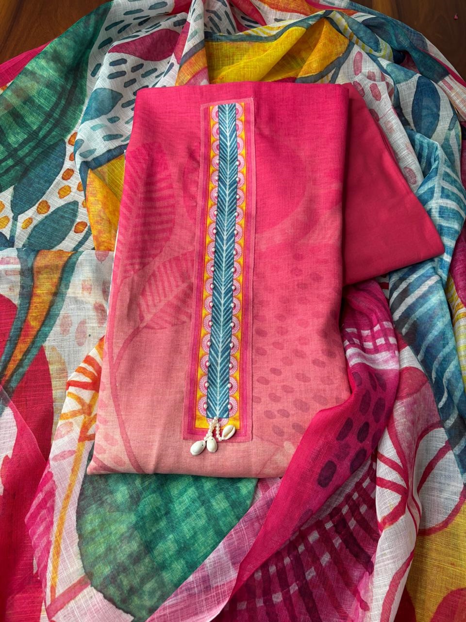 Linen suit & Dupatta with cotton bottom