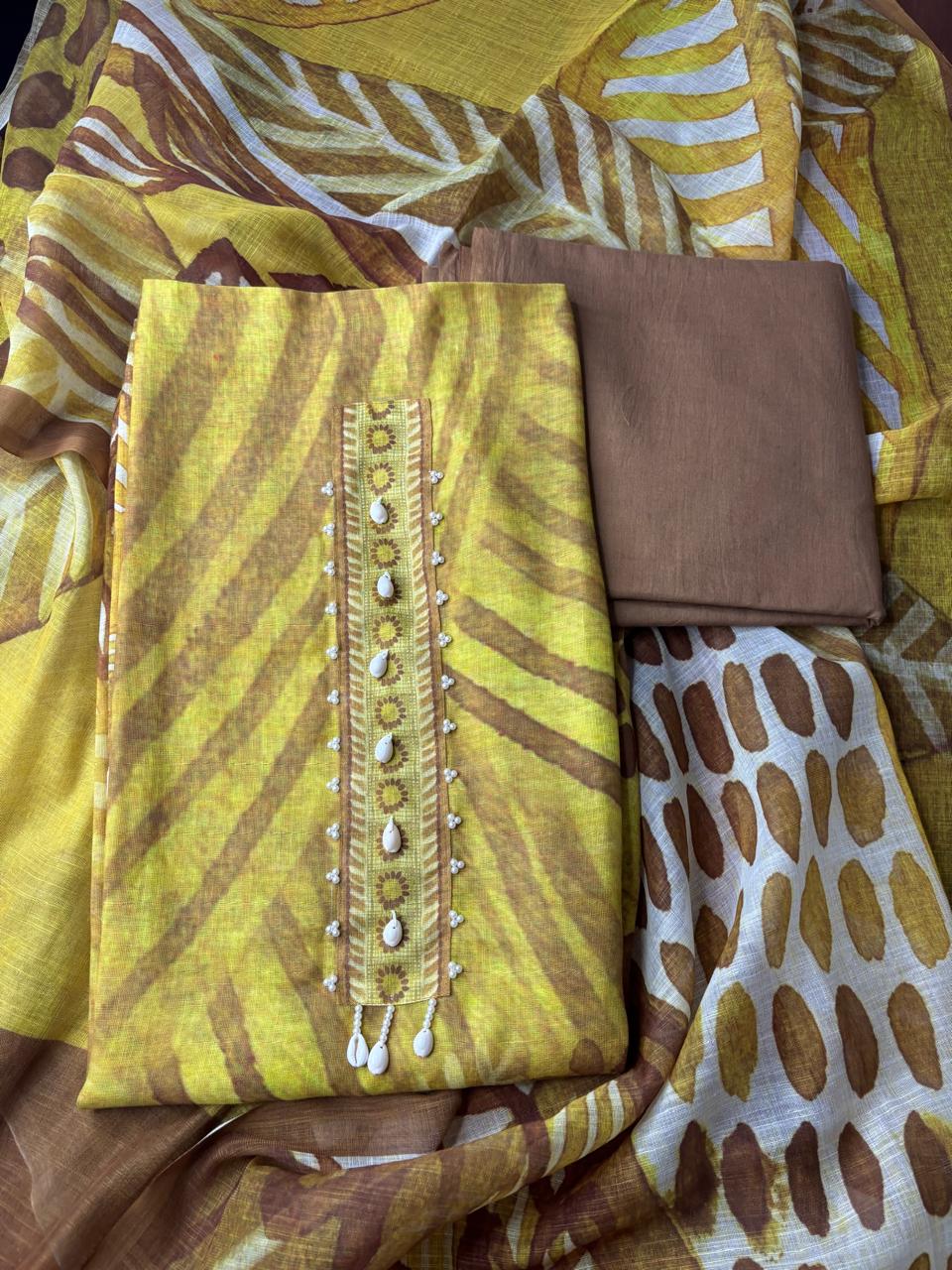 Linen suit & Dupatta with cotton bottom