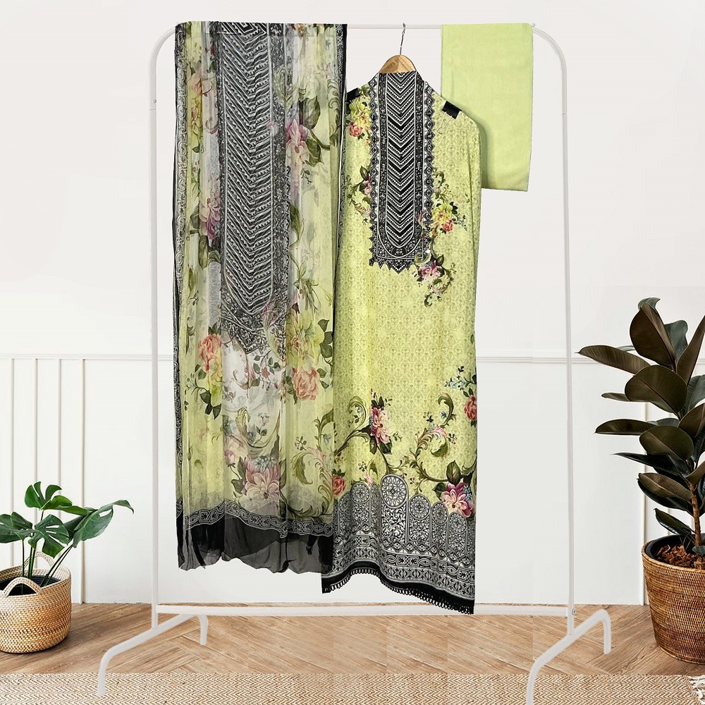 Viscose Linen Suit & Chiffon Dupatta and Santoon bottom